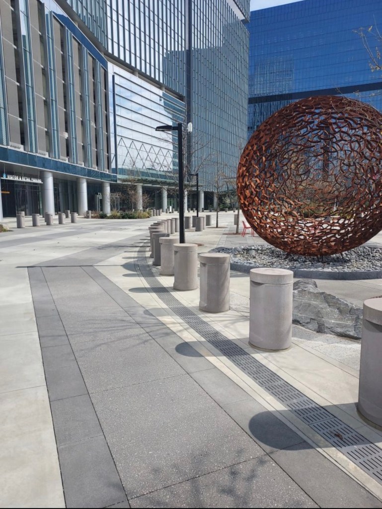 Todays landscaping has changed dramatically and especially of late. Now we are able to design projects that are aesthetically beautiful. Often radius trench drains are a large part of these modern projects. Incorporating drainage, such as trench drains, tied together the sections of a particular projects having both Civil and Landscape design elements in them. That’s the answer to the question. The intersection is drainage.