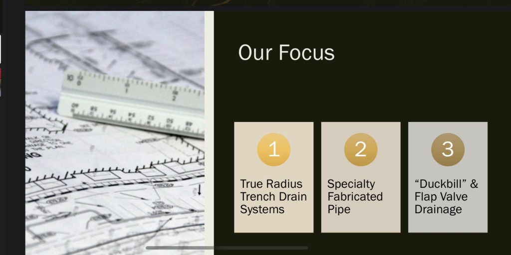 So what is the common denominator? From my perspective it’s storm drainage. Others may see something else. The moving flow of stormwater has to go somewhere. Trench and slot drains are valuable tools for moving large volumes of water rapidly. They terminate into larger drainage parts of civil drainage systems.