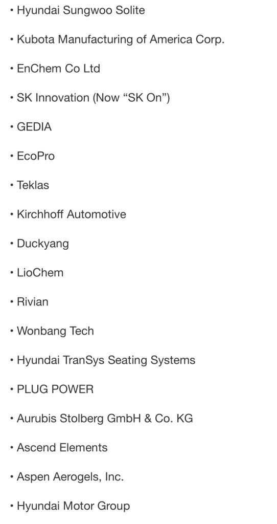 18 Major Manufacturer’s now focusing their EV efforts in Georgia. Information Credit – Georgia Trends Magazine, August 2022